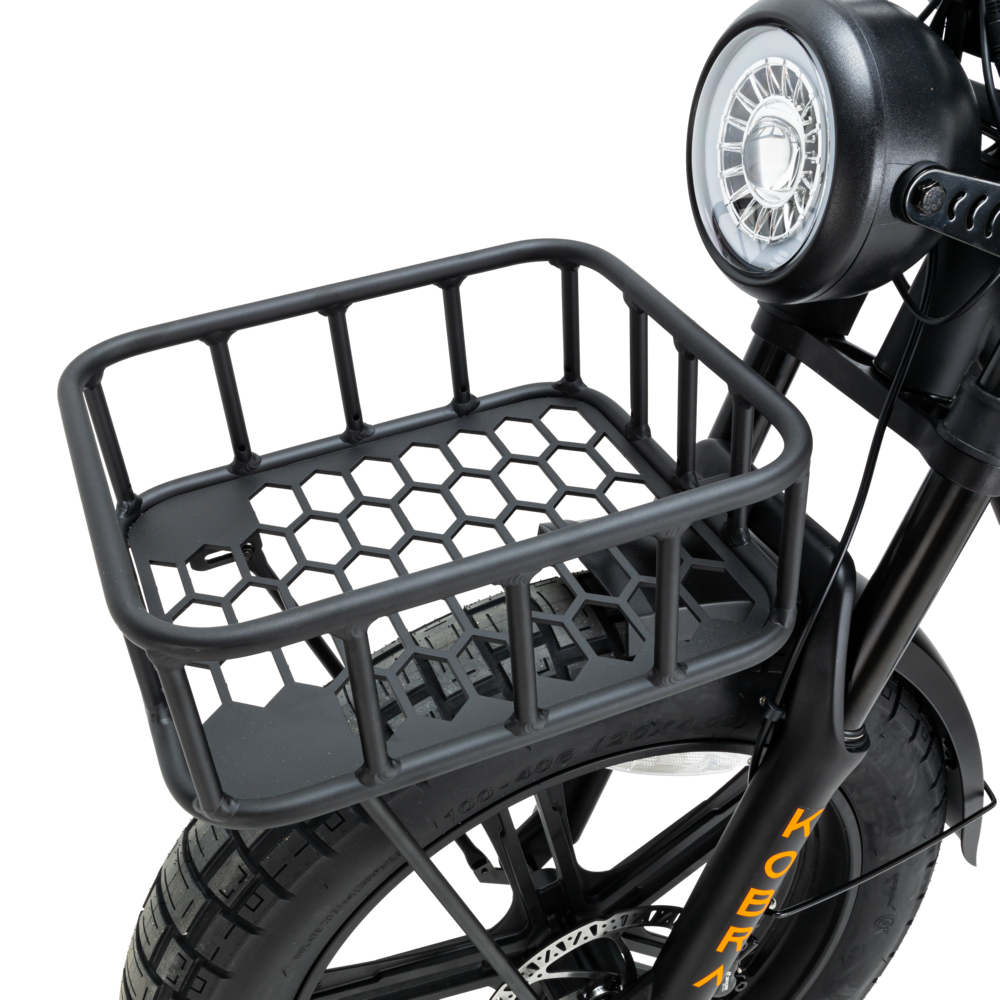 Een accessoire die eigenlijk niet mag missen is het KOBRA Voormandje. Het mandje met prachtig KOBRA Design maakt het gemakkelijk om wat spulletjes mee te nemen. Erg handig, zeker als je even geen rugzak om kan wanneer er iemand achterop zit! Het mandje is van staal en is eventueel eenvoudig zelf of door een van onze specialisten te monteren. Indien je ervoor kiest om het zelf te doen, vergeet dan niet om het voorlicht in de hoogste positie te verstellen!